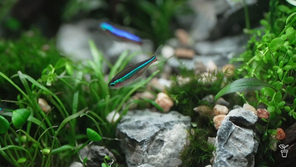 In the Iwagumi style, the fish are the showpiece that bring the tank to life.